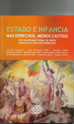 Acaba de aparecer el libro "Estado e Infancia. Más derechos, menor castigo", que contiene aportes de nuestros amigos Claudia Cesaroni, Luis Niño, Gustavo Vitale y Germán Martín, todos ellos docentes de nuestra Maestría o asiduos y entrañables visitantes de la UNLPam, como así también de otros reconocidos intelectuales, militantes y escritores tales como María Laura Böhm, Guillermo Berto, Dardo Bordón Costa y Horacio Cecchi. La obra fue editada por la Universidad Nacional del Comahue y anuncia desde su título una elaboración crítica en favor de los derechos de niñas y niños. Enhorabuena. Un trabajo de esas características nos estaba haciendo falta a todos. Desde este espacio, saludamos esta oportuna iniciativa de compañeros con los cuales compartimos preocupaciones y causas comunes, y transitamos juntos caminos para nada sencillos.